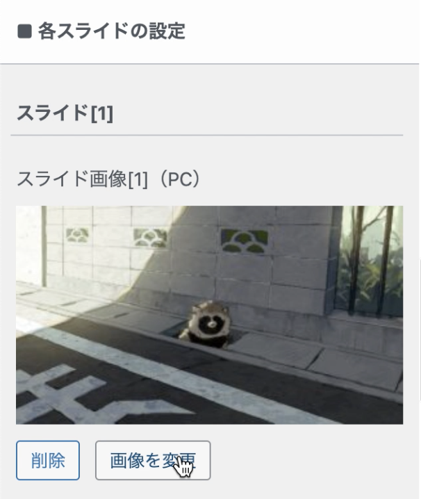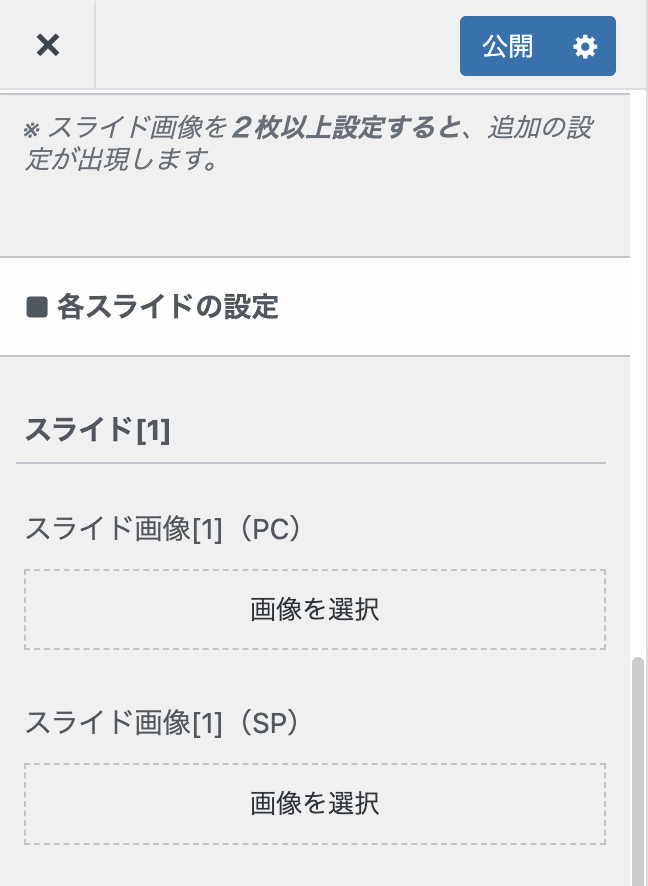 スライド画像を画像を選択から設定できます(pc/sp個別に設定可能)