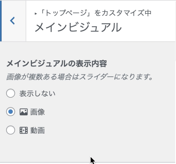 メインビジュアル設定-非表示・画像or動画の選択-