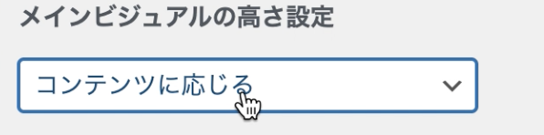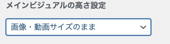 「メインビジュアルの表示内容」項目にて、セレクトボックスでメインビジュアルの形式を選択します。