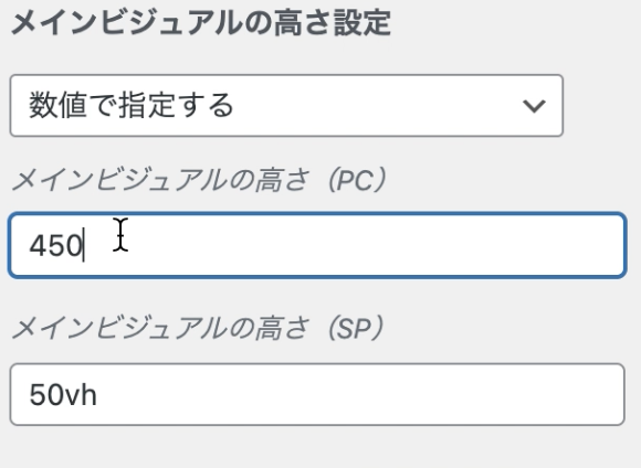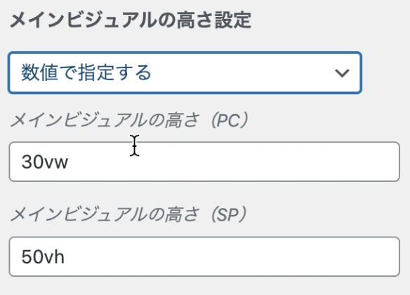 メインビジュアルの表示される高さ設定が可能。