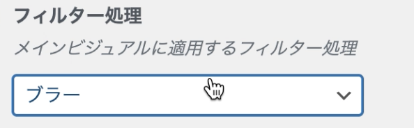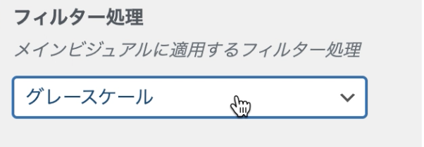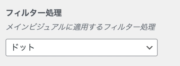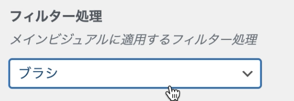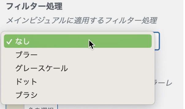 フィルター処理は、メインビジュアルの画像or動画に加工処理をつけることができます。